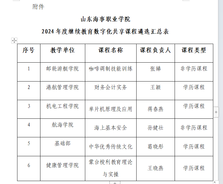 附件:山东海事职业学院2024年度继续教育数字化共享课程遴选汇总表